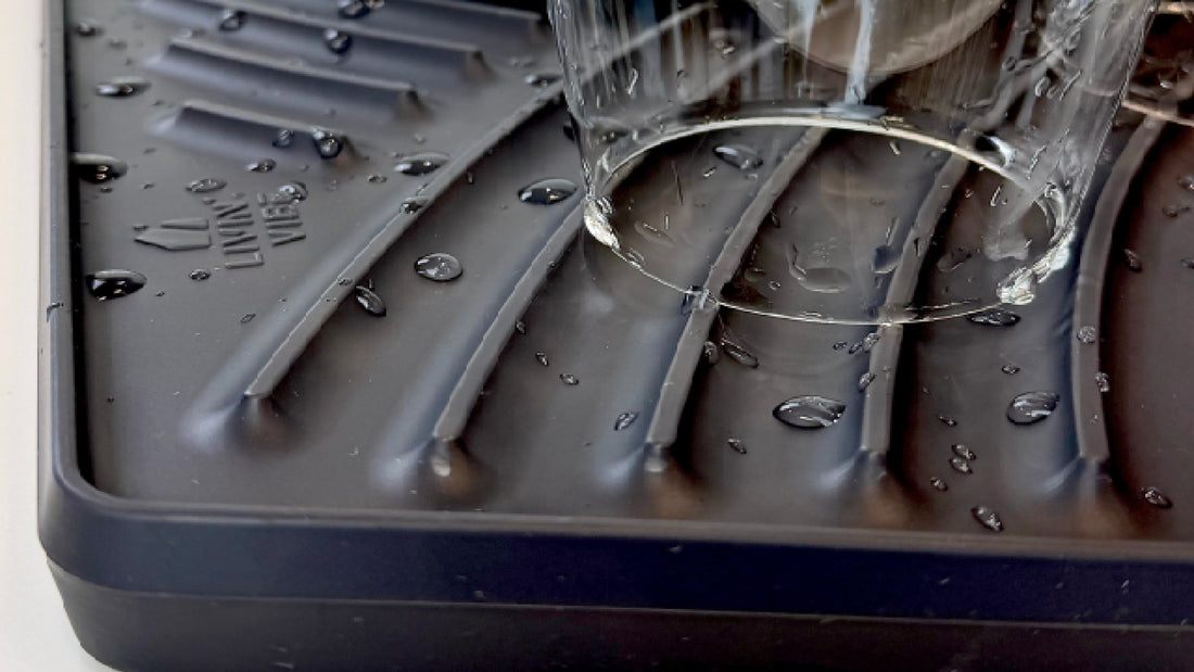 This drying mat works perfectly! It’s sturdy, non-slip, and dries quickly — no more wet counters!